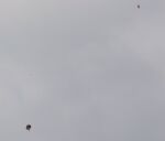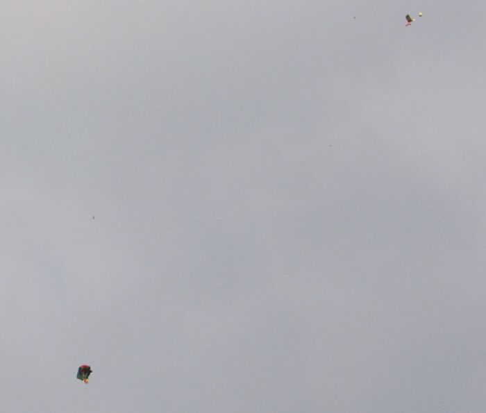 Fallschirmspringer, ferngesteuert. Links unten im Bild der Fallschimrspringer und rechts oben der Wingo Porter, der ihn abgeworfen hat.