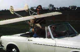 Hierzu wurde die Fernsteuerung provisorisch eingebaut und die RAK in ein Cabriolet verfrachtet. Eine Person bediente die Fernsteuerung, die zweite Person hob die RAK1 in den Fahrtwind und die dritte Person saß am Autosteuer und durfte gehörig Gas auf dem Zufahrtsweg zu unserem Fluggelände geben.