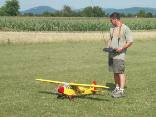 Hier eines der größeren bzw. schwereren Modelle auf unserem Platz, die Piper mit 20 Zellen und 4,3kg Abfluggewicht von Erwin Heuzeroth.