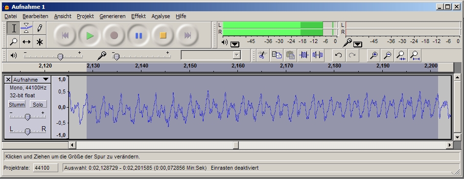 Die Software zur Auswertung der Schallkurve ist das Programm "AUDACITY", es ist als Freeware