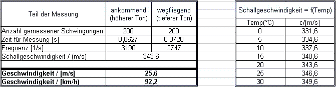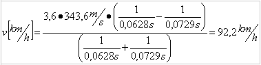 setzen wir jeweils für f die Kehrwerte der Zeiten ein, und rechnen die Geschwindigkeit in km/h um, so ergibt sich: