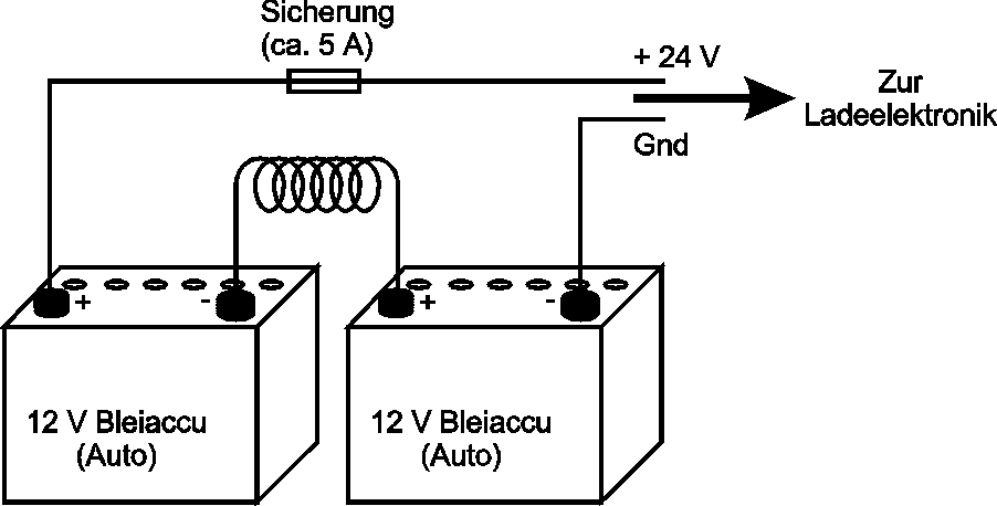 Als Versorgungsspannung sollen 2 Autobatterien genommen werden, das bedeutet eine Versorgungsspannung von 24 V.