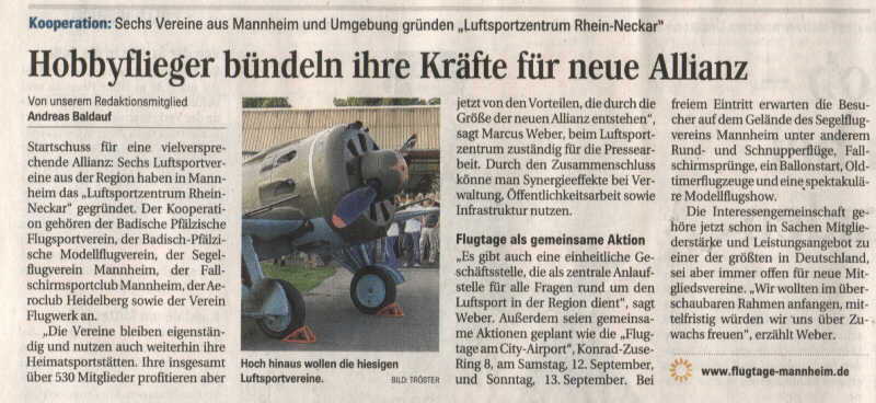 Mannheimer Morgen 29.12.2008 (mit Ankündigung in "Heute im Lokalen") |