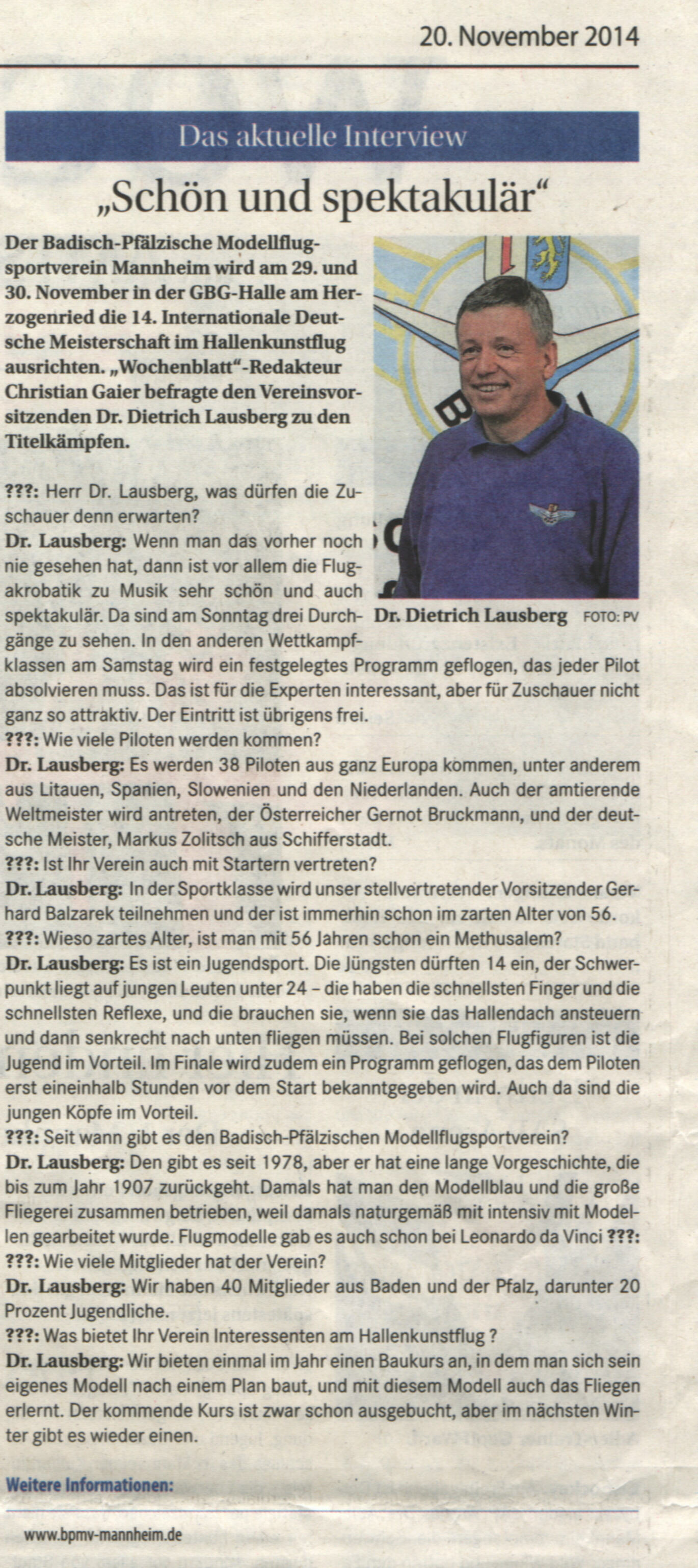 Wochenblatt 20.11.2014 (Zahl der Mitglieder nicht korrekt angegeben) |