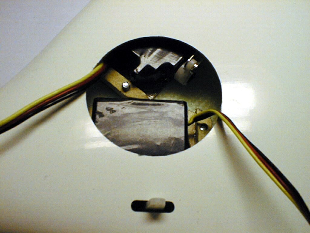 Weiterhin werden nun die H/S-Servos in der Seitenruderflosse montiert. Der runde Ausschnitt ist bereits vorbereitet. Beim Vorgängermodell kamen die Servos in den Rumpf. Am Schwerpunkt macht das nicht viel, da man diesen mit dem Antriebsakku gut regulieren kann. |